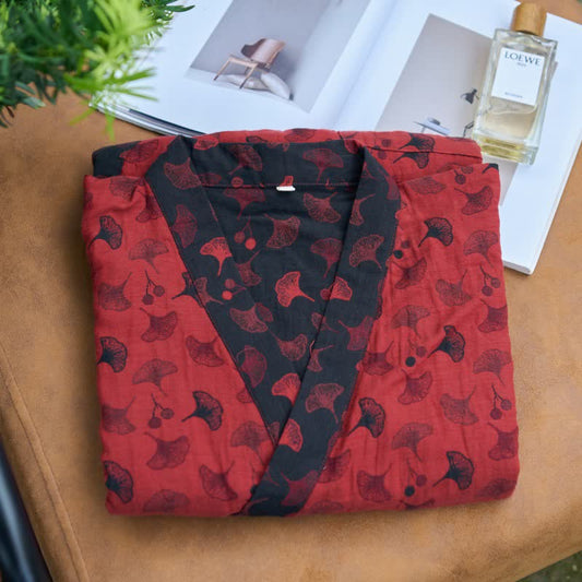 Ownkoti Luxurious Large Ginkgo Leaf Cotton Kimono Robe