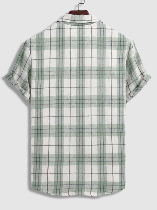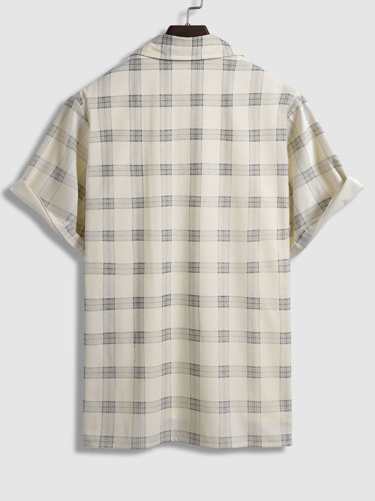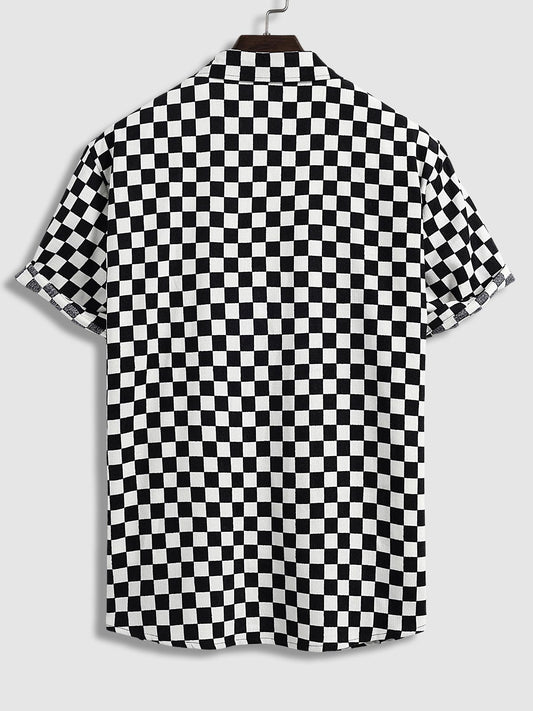 Men's short sleeve retro style shirt with checkered pattern and pocket
