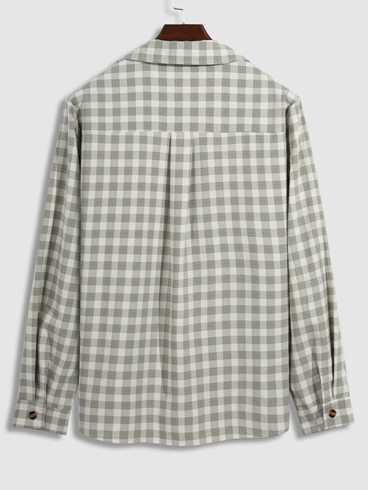 Men's Classic Casual Checkered Shirt with Pockets and Long Sleeves