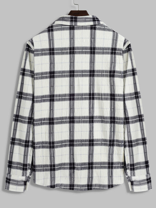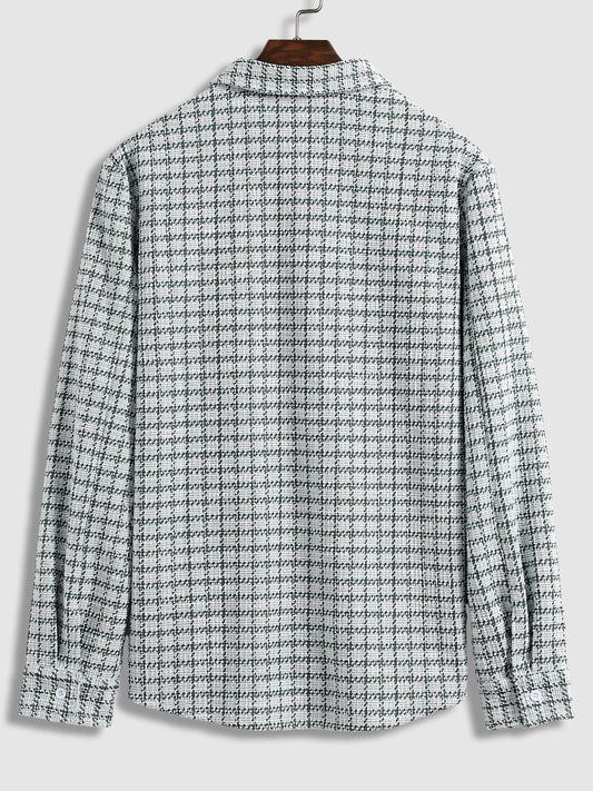 Men's Classic Solid Color Plaid Texture Button-Up Shirt Jacket