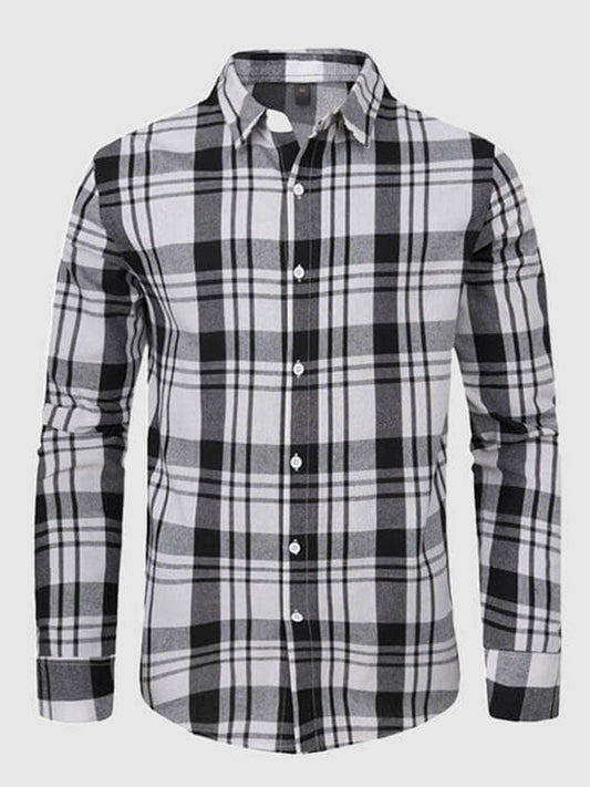 Men's Long Sleeve Casual Shirt with Plaid Pattern and Loose Fit