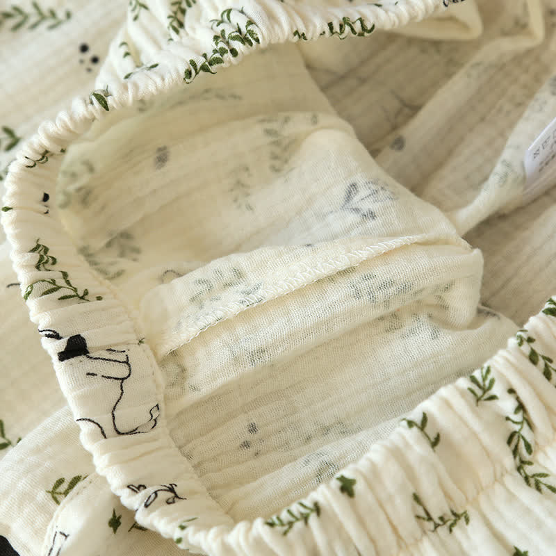 Ownkoti Charming Cotton Pajama Set with Cat and Leaf