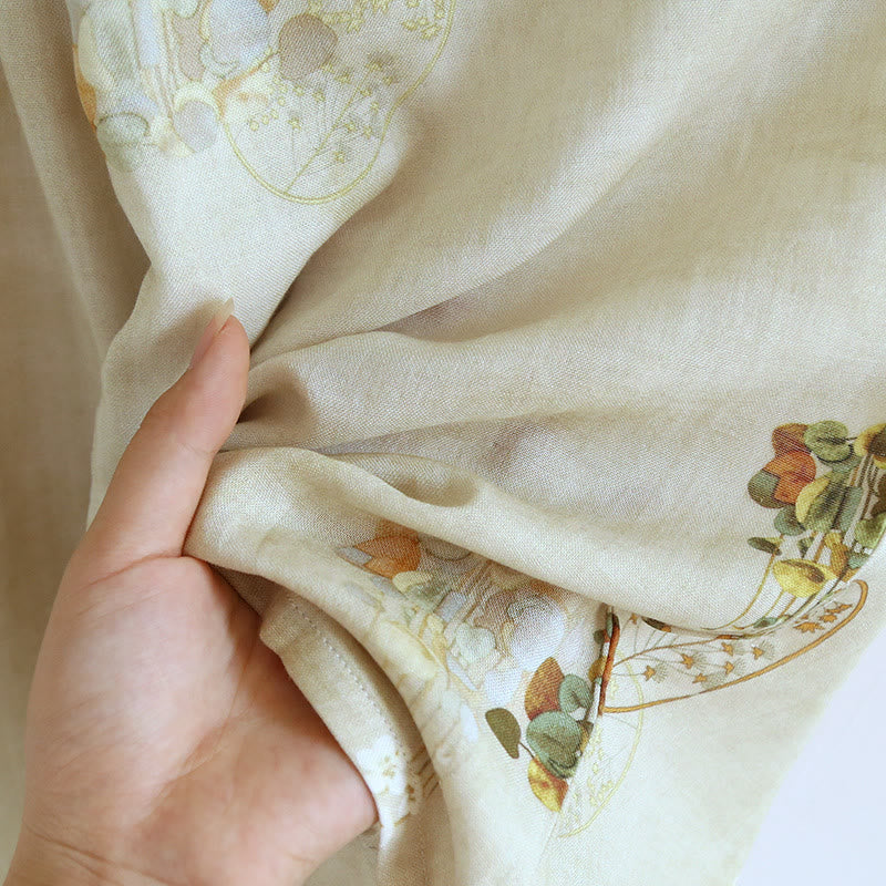 Crafted with a keen eye for unique style, this pajama set blends exquisite luxury with floral charm. Its cross-front design, adorned with button closure, adds a lively touch. Made from premium bamboo fiber, it offers a luxurious feel against the skin—soft, smooth, and lightweight. Suitable for year-round wear, indoors or outdoors, it's the epitome of comfort and elegance.
