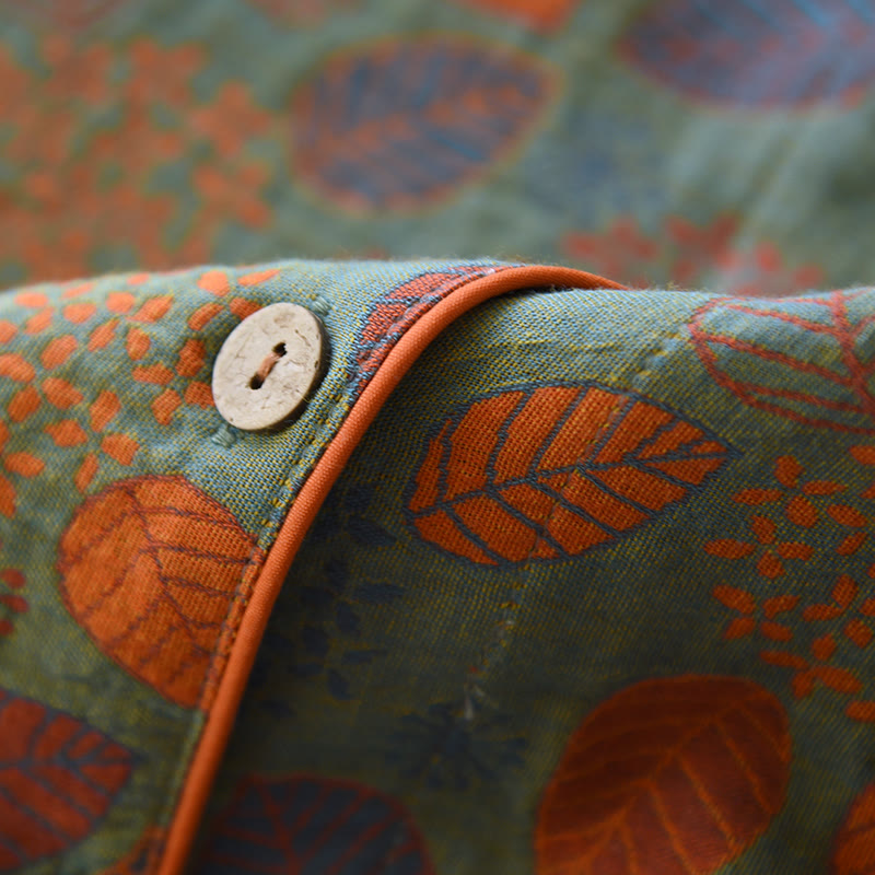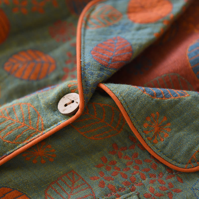 Comfort meets style with the Ownkoti Leaf Green Cotton Gauze Loungewear Set. Made from lightweight, breathable cotton gauze and featuring a unique plant pattern, this set is perfect for indoor wear during spring, autumn, or summer. It's a thoughtful gift for your loved ones.