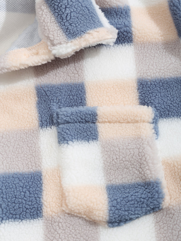 Casual Classic Plaid Outfit for Men with Plush Faux Fur Jacket and Corduroy Pants