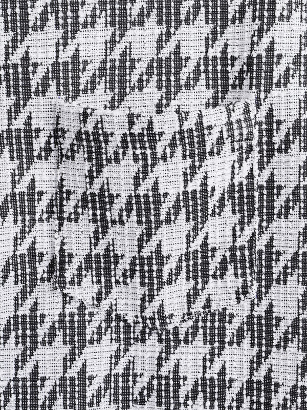Men's Casual Houndstooth Pattern Short-Sleeve Shirt with Plaid Weave