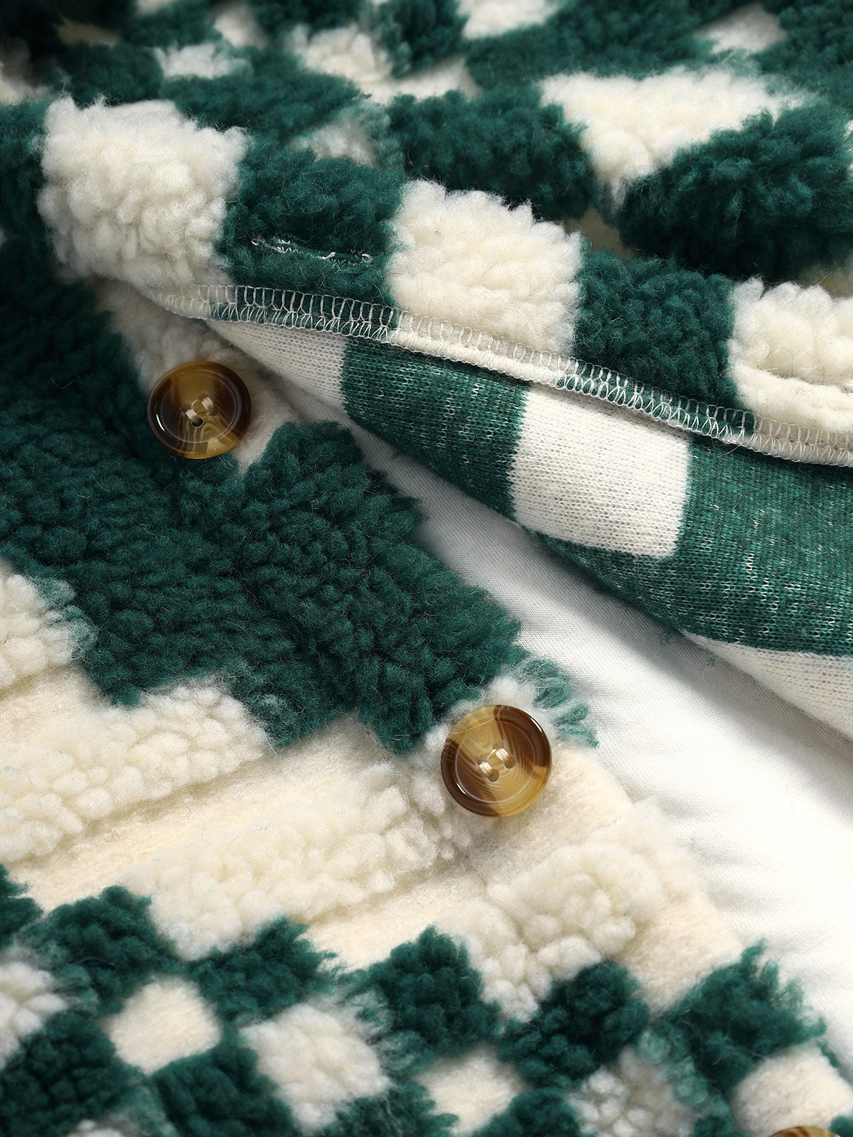 Men's Stylish Irregular Plaid Fluffy Faux Fur Casual Shirt Jacket
