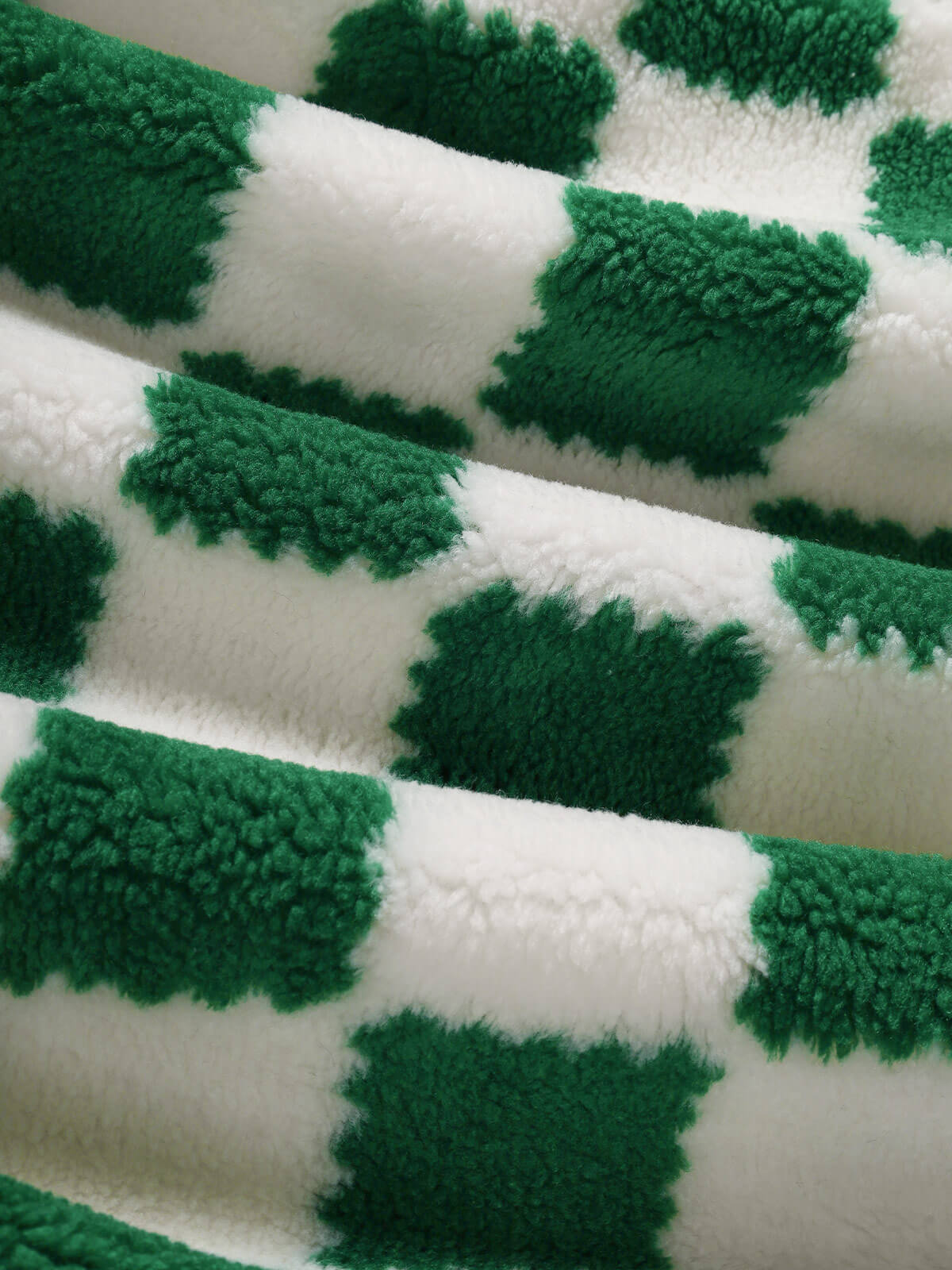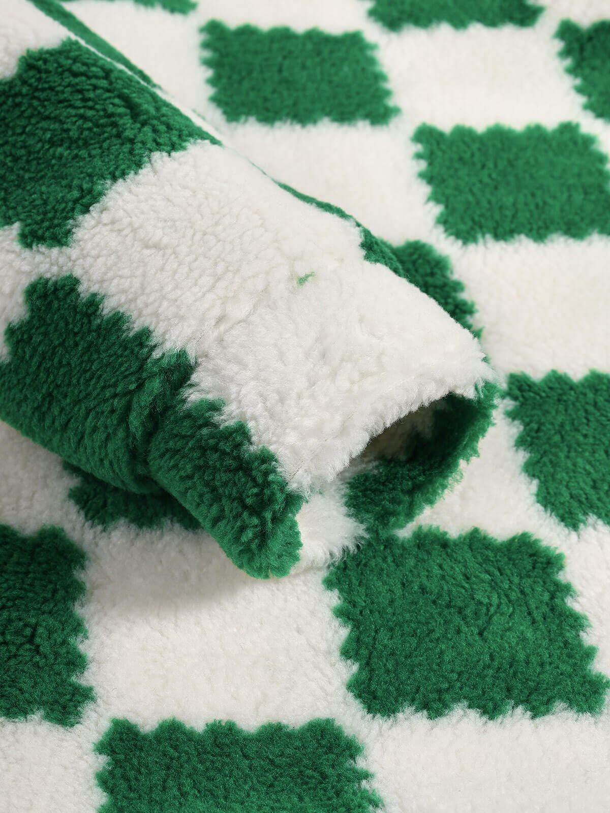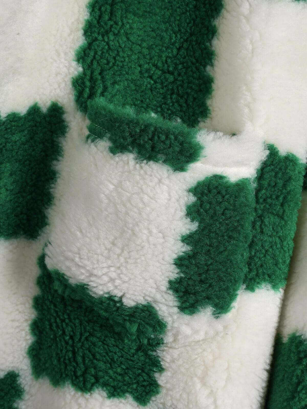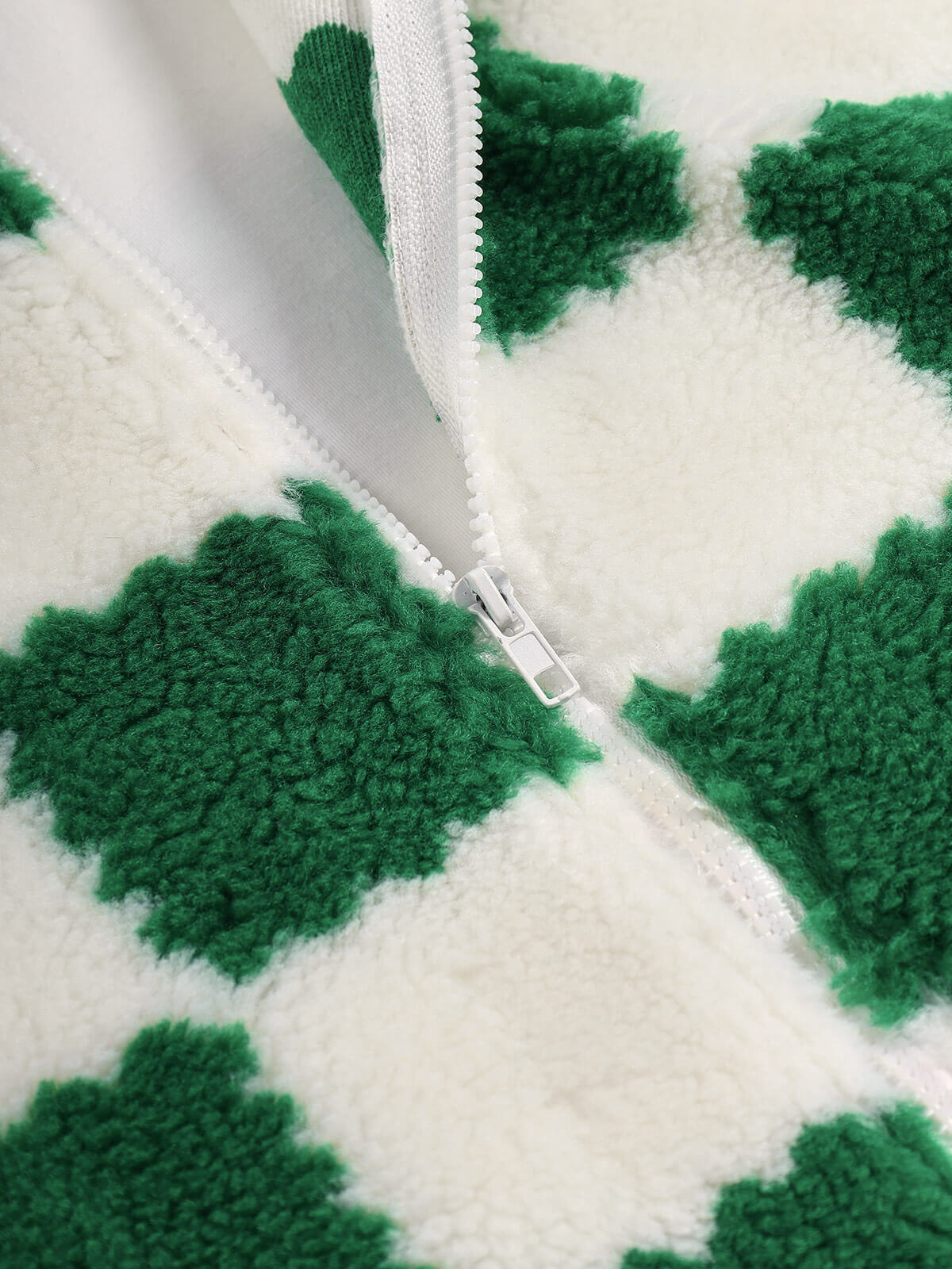Men's faux fur plaid jacket with a single pocket and zipper for a casual and trendy style