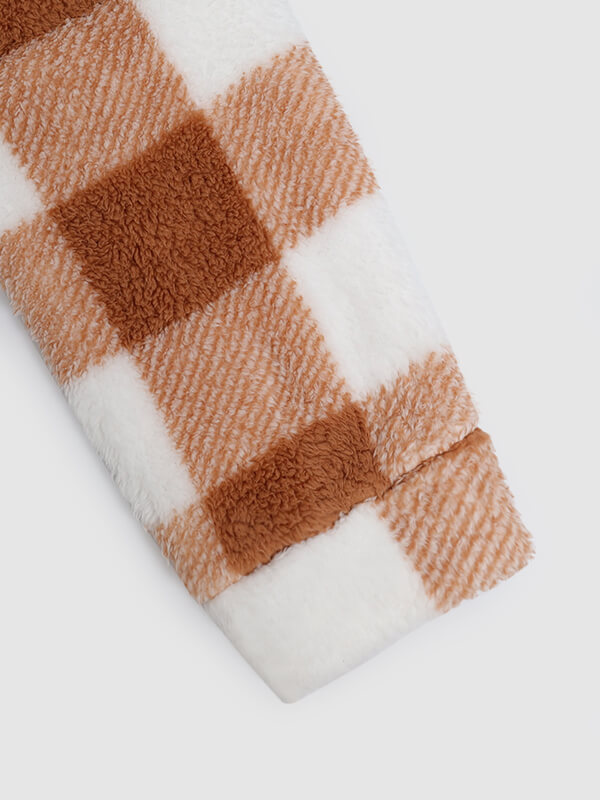 Men's Plaid Fleece Button-up Jacket with Pocket
