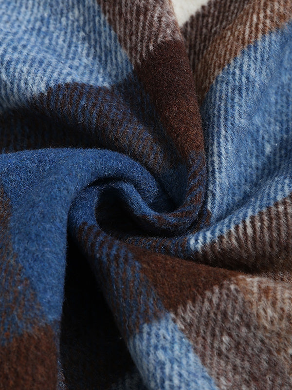 Men's Wool Blend Checkered Pattern Jacket with Notch Collar