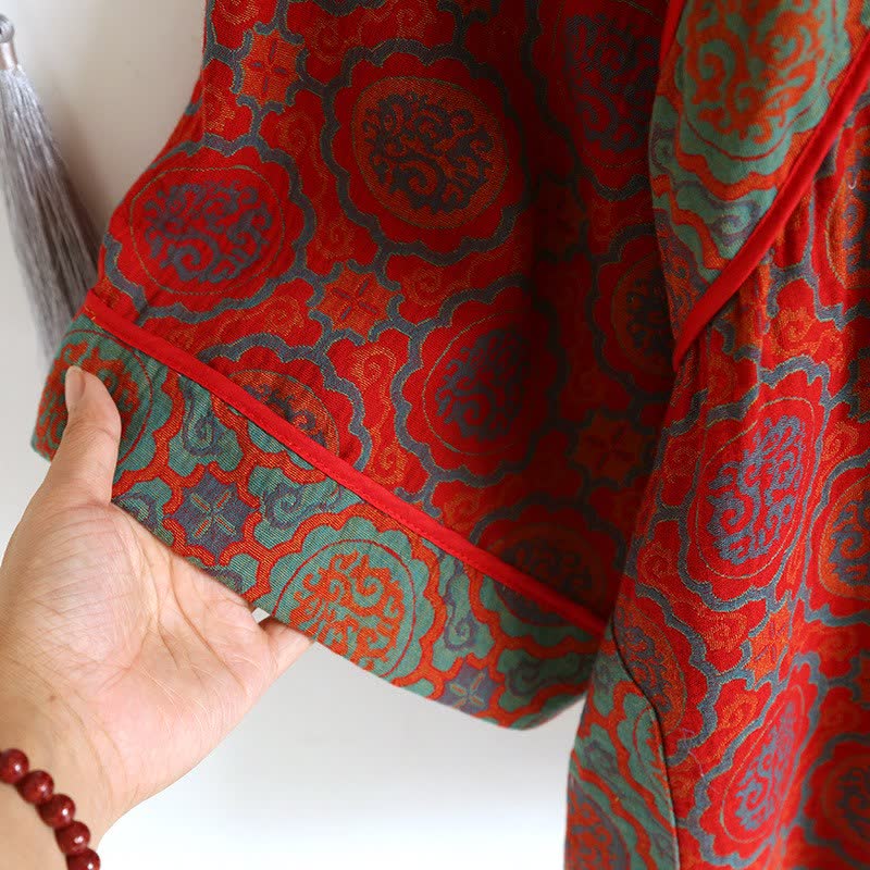 • Design & Fit: Inspired by retro oriental aesthetics, featuring a decorative bead-clasp button at the neckline, elegant tassel accents, and a coordinated set of long-sleeved top with matching pants.