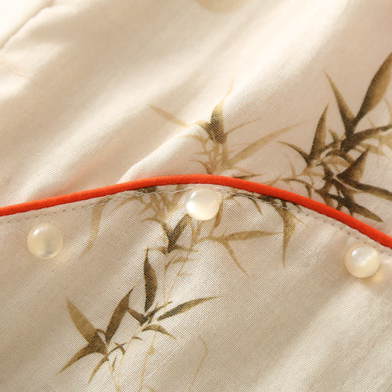 Immerse yourself in relaxation and experience unparalleled comfort with our light and breathable nightwear set. Enhanced by delightful persimmon prints, this collection exudes vintage charm and luxury. Meticulously crafted from top-quality cotton, the fabric ensures exceptional comfort and breathability throughout the night, making it the perfect choice for your bedtime routine.