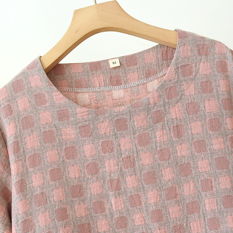 With its elegant plaid patterns and round-neck design, this nightgown exudes luxury and sophistication. Crafted from premium pure cotton, it offers exceptional breathability and softness. The ultra-soft fabric gently caresses your skin, making it the perfect choice for lounging at home or indulging in a blissful night's sleep, ensuring comfort and style at every moment.