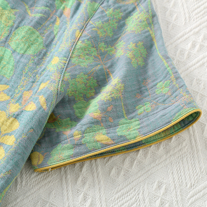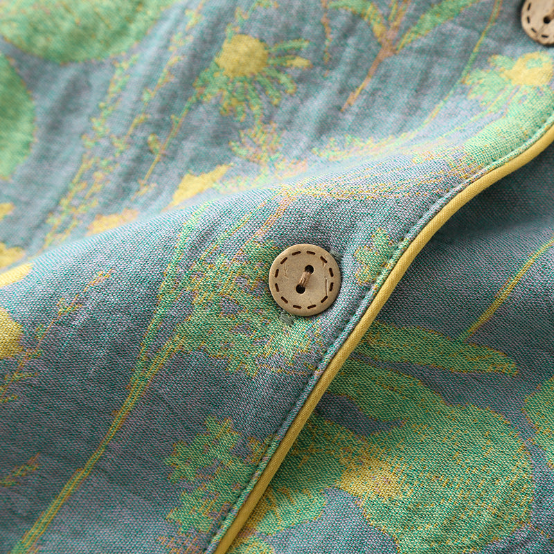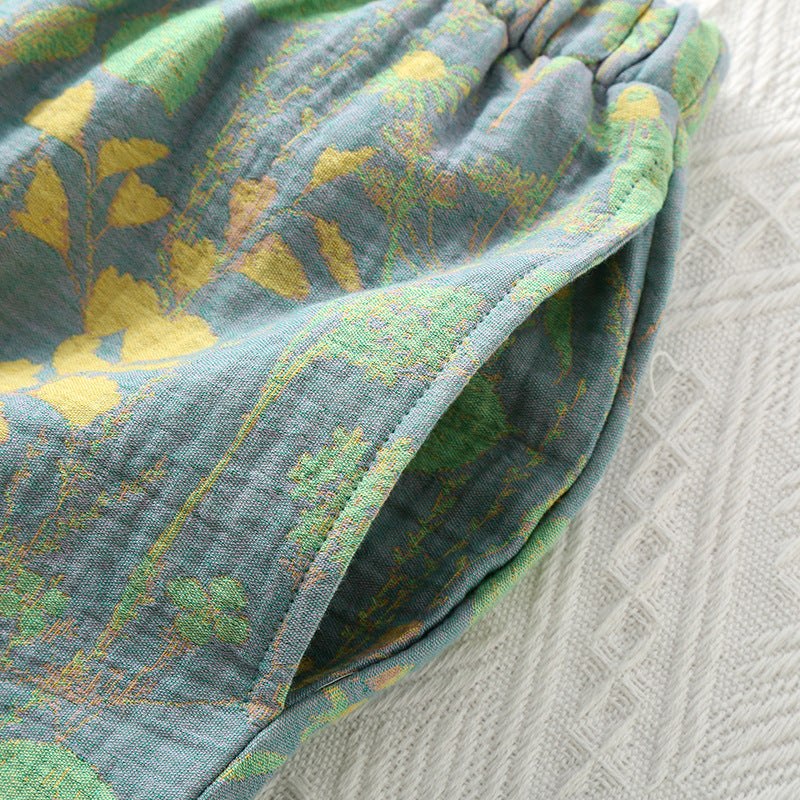 Pamper yourself with a fashionable and cozy night's sleep in our cotton gauze chic pajamas. This set offers a perfect blend of relaxation and fashion, featuring a short-sleeved top and coordinating cropped pants. Adorned with exquisite floral print, they also serve as a perfect present for your loved ones, guaranteeing both fashion and comfort.