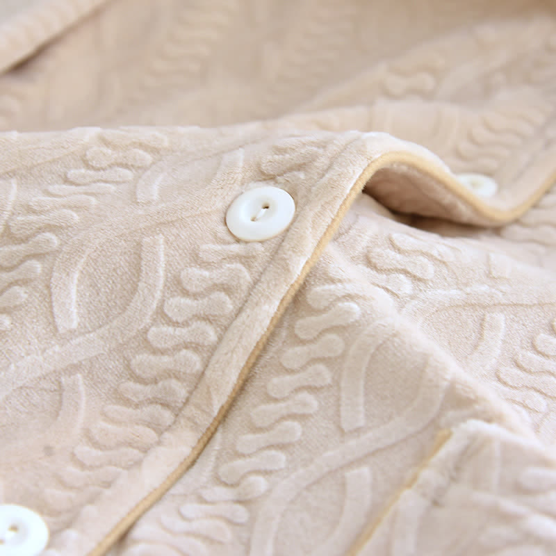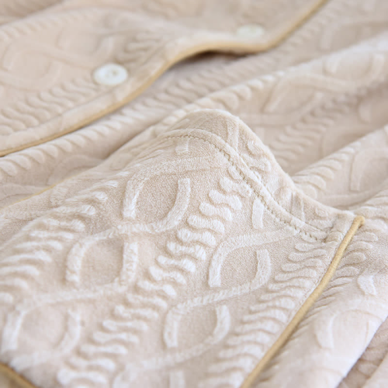 The solid color loungewear exudes elegance and simplicity. Made from premium microfiber flannel fabric, it is incredibly soft, warm, and gentle on the skin. The practical pocket design on both sides provides space to store your phone or keep your hands warm. Ideal for chilly mornings and evenings, this loungewear is a great choice for both indoor and outdoor use.