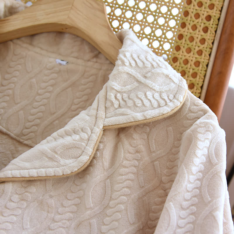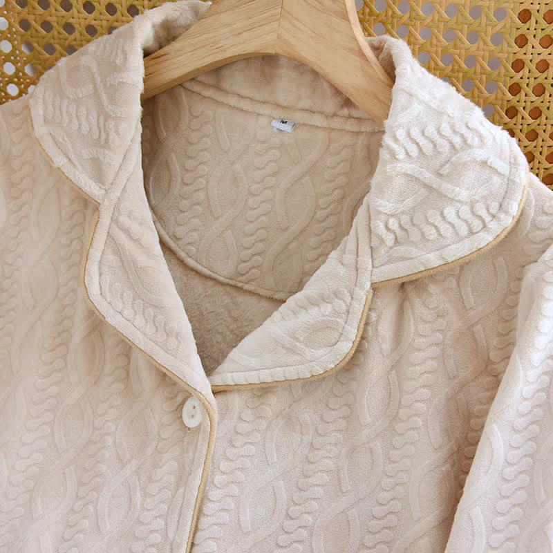 Ownkoti Unisex Solid Color Flannel Pajama Set with Classic Lapel Design