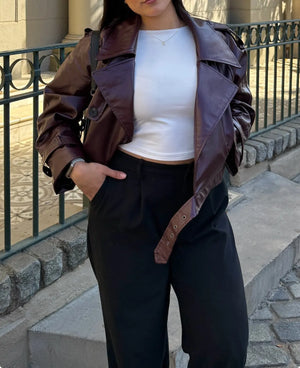 Transform your outfit instantly with the jacket's modern cropped design. Whether heading to a casual brunch or a night out, its sleek look elevates any ensemble, making you the center of attention.