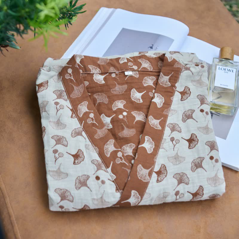• Ginkgo Leaf Motif & Meaning: The robe features ginkgo leaf patterns, symbolizing longevity, peace, and resilience. An inspiring print inspired by nature and harmony.