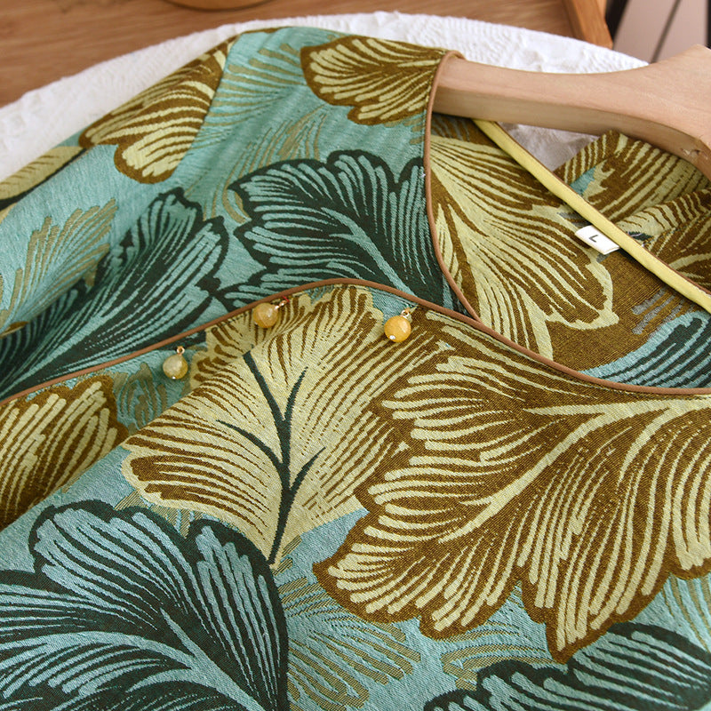 Cotton Loungewear Set with Colorfully Woven Leaf Patterns